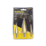 AKILDA Kit 3-Brocas Pino 4-12 4-20 4-32mm p/Metal HSS Escalonadas