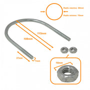 Abrazadera UDN-08 para poste de 70-90mm con 2 tuercas y 14mm de platinas. Ideal para fijar estructuras en aplicaciones de anclaje.