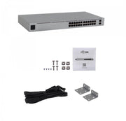 El Switch UBIQUITI USW-24-POE es un dispositivo de red con 24 puertos Gigabit PoE y 2 puertos SFP, ideal para redes UniFi.